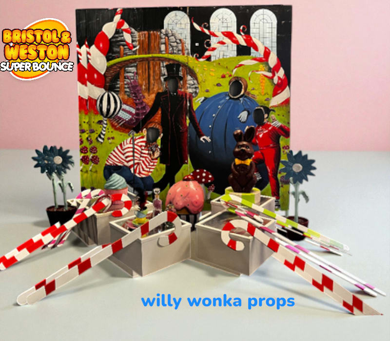 Transform any celebration with Willy Wonka themed pary props. These colorful standees, candy canes, sweets, chocolate bars and oversized lollipops create instant wonder and photo-ready moments. Ideal for birthdays, school events, corporate family days and community fairs. We deliver professional themed parties Willy Wonka themed pary props in south west with fast setup and reliable service. Vibrant prints, sturdy construction and playful design make every event pop.
