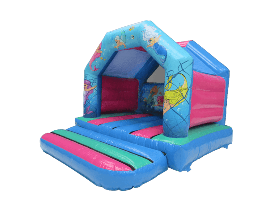 🌟 This vibrant and captivating bouncy castle is the perfect addition to any seaside-themed event or children's party. 🎉 Let your little ones' imaginations run wild as they embark on an underwater adventure with their favorite mythical creatures. With its bright colors and captivating mermaid graphics, this bouncy castle will surely be the highlight of the day! 🎈