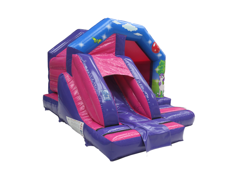 Our bouncy castle and soft play hire Unicorn Castle with Front Slide in Bridgwater, Burnham-on-Sea, Weston-super-Mare, Clevedon, Nailsea, Portishead, Bristol, Bath, Gloucester, Newport, and surrounding areas ensures that your event is the talk of the town. We offer reliable delivery and setup, making the process seamless and stress-free. Let us bring the magic to you and create an unforgettable experience for everyone involved.