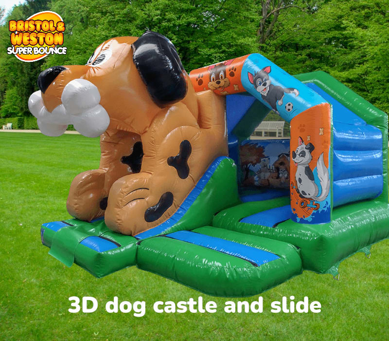Ready to wow your guests? Book the 3D Puppy dog castle and slide for reliable, fun inflatable hire across Taunton, Wellington, Bridgwater, Weston super mare, Clevedon, Nailsea, Portishead, Bristol, Bath and surrounding areas. Contact us to reserve dates, confirm delivery and get a competitive quote. πβ¨