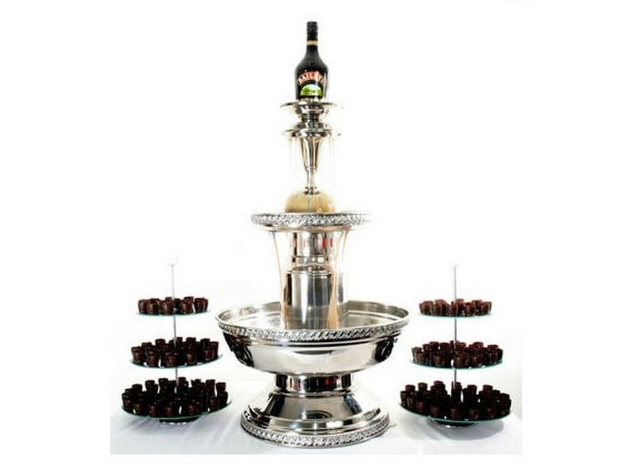your guest will love this fountain as the chilled Baileys flows down the fountain like a water fall ,first they drink the chilled Baileys and then eat the delicious Belgian chocolate shot cup