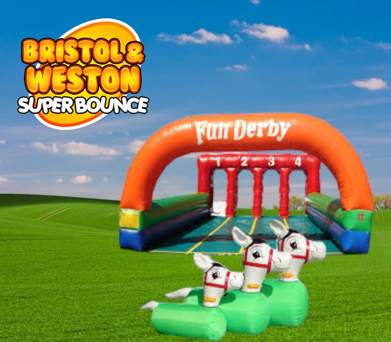Our inflatable horse racing game is available for hire in Taunton, Wellington, Bridgwater, Burnham on Sea, Minehead, and the surrounding areas. Whether you're organizing a birthday party, a school fair, or a company team-building event, our Derby Horse Hopper Racing game is guaranteed to be a hit!