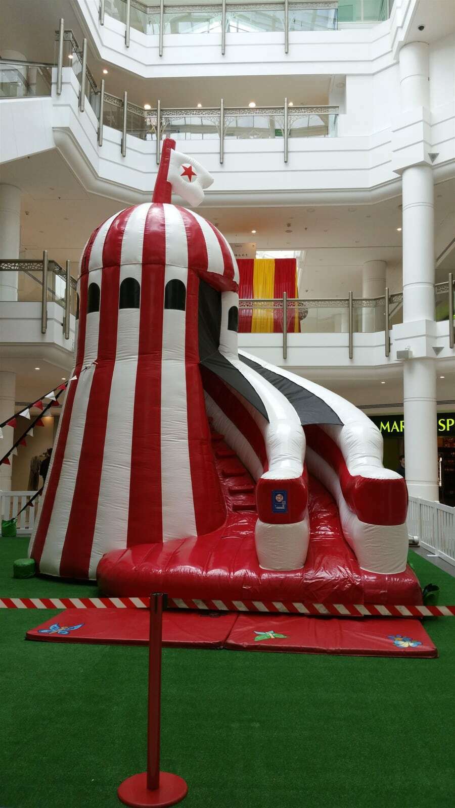 The inflatable Helter Skelter slide is themed up to replicate the look of the old school Helter Skelters seen at traditional fairgrounds worldwide and it bound to bring all these childhood memories flooding back.