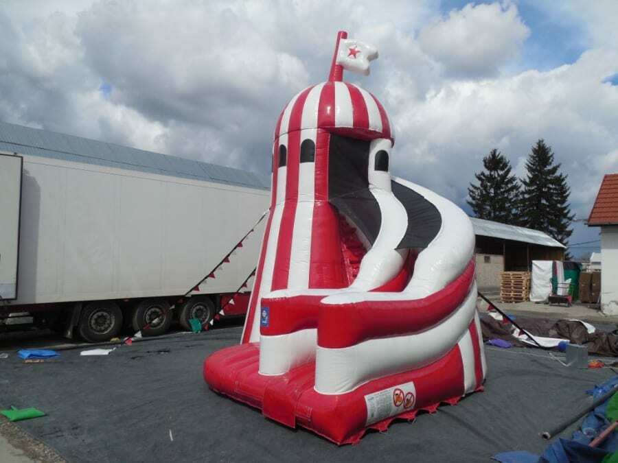 Here we have this beautiful vintage Helter skelter inflatable, a blast from the past with striking red and white stripes this inflatable is guaranteed to make any event